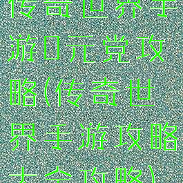 传奇世界手游0元党攻略(传奇世界手游攻略大全攻略)