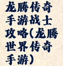 龙腾传奇手游战士攻略(龙腾世界传奇手游)