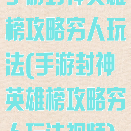 手游封神英雄榜攻略穷人玩法(手游封神英雄榜攻略穷人玩法视频)