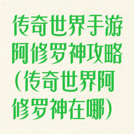 传奇世界手游阿修罗神攻略(传奇世界阿修罗神在哪)