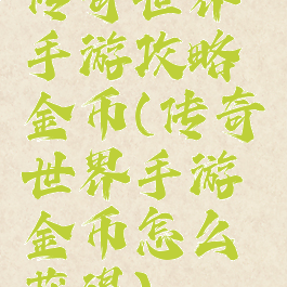 传奇世界手游攻略金币(传奇世界手游金币怎么获得)
