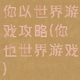 所在位置: 首页 > 专题 > 你以世界游戏攻略(你也世界游戏)