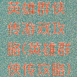 英雄群侠传游戏攻略(英雄群侠传攻略)