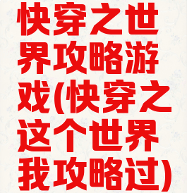 快穿之世界攻略游戏(快穿之这个世界我攻略过)
