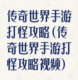 传奇世界手游打怪攻略(传奇世界手游打怪攻略视频)