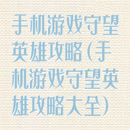 手机游戏守望英雄攻略(手机游戏守望英雄攻略大全)