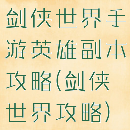 剑侠世界手游英雄副本攻略(剑侠世界攻略)