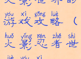 所在位置: 首页 > 专题 > 火影世界的游戏攻略(火影忍者世界游戏)