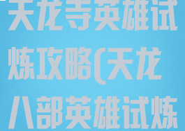 天龙八部手游天龙寺英雄试炼攻略(天龙八部英雄试炼关卡一览表)