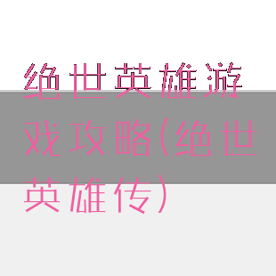 所在位置: 首页 > 专题 > 绝世英雄游戏攻略(绝世英雄传)