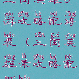 三国英雄手游攻略配将表(三国英雄录攻略配将表)