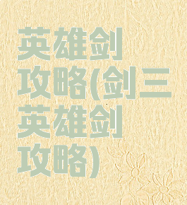 英雄剑冢攻略(剑三英雄剑冢攻略)