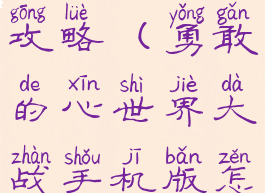 勇敢的心游戏世界大战攻略(勇敢的心世界大战手机版怎么开始游戏)