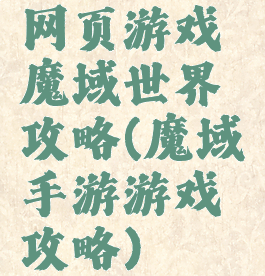 网页游戏魔域世界攻略(魔域手游游戏攻略)