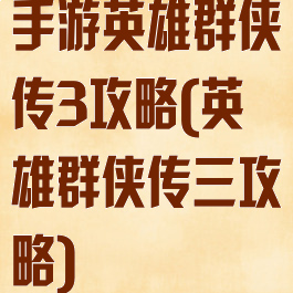 手游英雄群侠传3攻略(英雄群侠传三攻略)