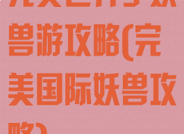 完美世界手妖兽游攻略(完美国际妖兽攻略)