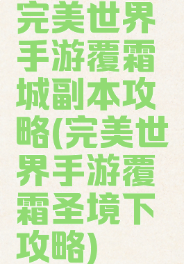 完美世界手游覆霜城副本攻略(完美世界手游覆霜圣境下攻略)