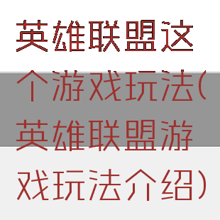 所在位置: 首页 > 专题 > 英雄联盟这个游戏玩法(英雄联盟游戏玩法介绍)