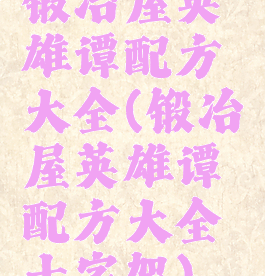 锻冶屋英雄谭配方大全(锻冶屋英雄谭配方大全十字架)