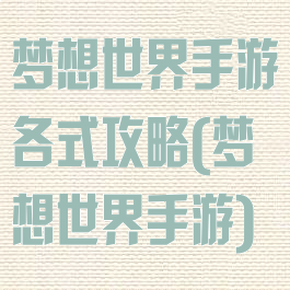 所在位置: 首页 > 专题 > 梦想世界手游各式攻略(梦想世界手游)