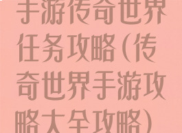 手游传奇世界任务攻略(传奇世界手游攻略大全攻略)