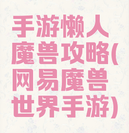 手游懒人魔兽攻略(网易魔兽世界手游)