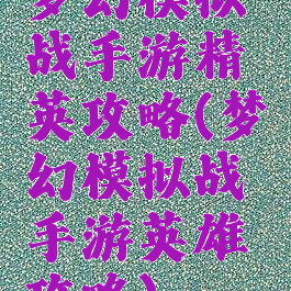 梦幻模拟战手游精英攻略(梦幻模拟战手游英雄攻略)