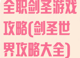 全职剑圣游戏攻略(剑圣世界攻略大全)