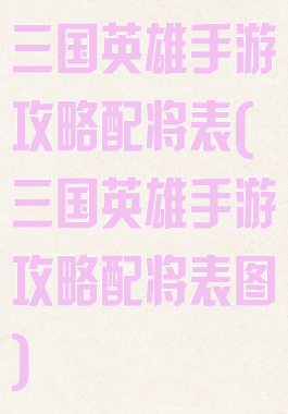 三国英雄手游攻略配将表(三国英雄手游攻略配将表图)