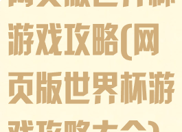 网页版世界杯游戏攻略(网页版世界杯游戏攻略大全)