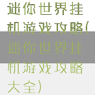 迷你世界挂机游戏攻略(迷你世界挂机游戏攻略大全)