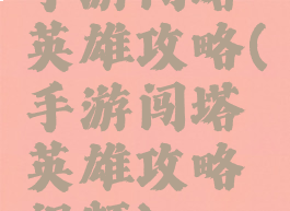 手游闯塔英雄攻略(手游闯塔英雄攻略视频)