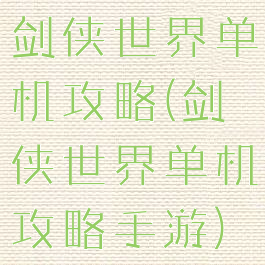 剑侠世界单机攻略(剑侠世界单机攻略手游)